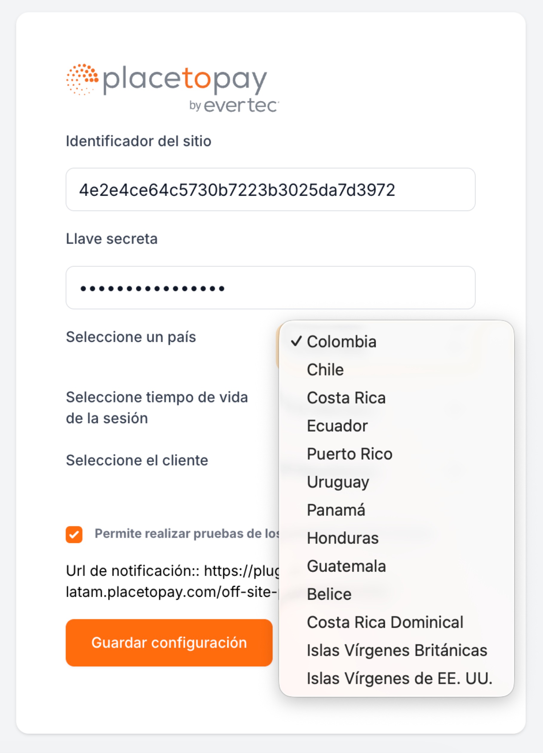 Serás redirigido automáticamente a la configuración de la pasarela de pagos donde deberás configuras los siguientes datos: