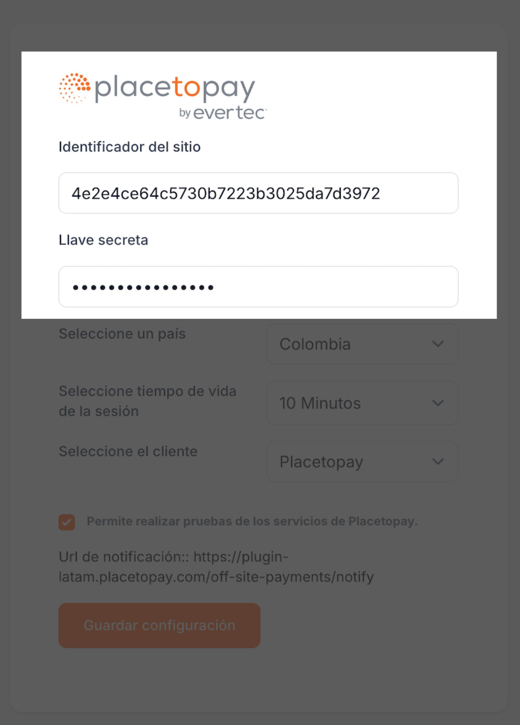 Estos dos datos fueron enviados por PlacetoPay, ingrésalos tal cual fueron enviados