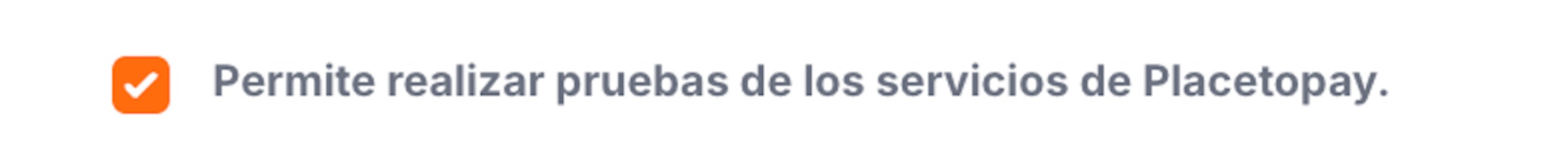 Esta opción determina el entorno que se utilizará. Si esta seleccionada está activo, se utilizarán los entornos de pruebas. Si deseas realizar ajustes en el entorno de producción, debes desactivar la opción.
